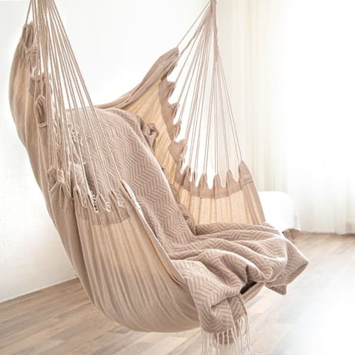 Auch Hängematten passen perfekt zum Boho Style. In größeren Räumen oder auf dem Balkon kann eine Haengematten zu unserem Lieblingsplatz werden – zum Lesen, Dösen oder einfach zum Schaukeln. In kleinen Zimmern übernehmen Pflanzenregale, Naturbilder und helle, luftige Vorhänge eine ähnliche Rolle. Sie holen das Draußen symbolisch nach drinnen.