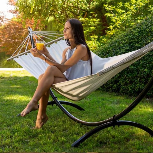 Viele Hängematten lassen sich bei Bedarf mit einem separaten Gestell kombinieren. So bleiben wir unabhängig von Bäumen oder festen Aufhängepunkten im Mauerwerk und können den Standort flexibel wechseln. Gleichzeitig rollen wir die Matte bei Nichtgebrauch einfach ein, verstauen sie oder lagern sie über den Winter im Haus. Das schont Material und Farben und reduziert unseren Aufwand bei der Gartenpflege.