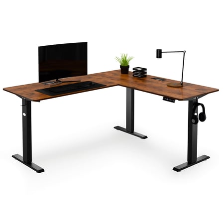 Der Eckschreibtisch Montaro ist mit einem elektrischen Mechanismus ausgestattet, der eine stufenlose und schnelle Höhenverstellung von 70,5 cm bis 113 cm ermöglicht. So können Sie ihn ganz einfach an Ihre Körpergröße und Ihre Arbeitsweise anpassen – egal, ob Sie lieber im Sitzen oder Stehen arbeiten.