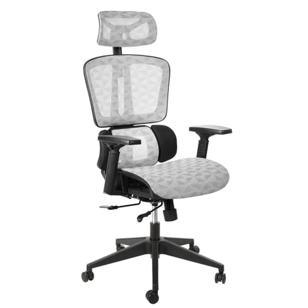 Das Besondere an dem Bürostuhl Preda ist das spezielle Netzmaterial in Hellgrau, das sowohl die Kopfstütze als auch die Sitzfläche und die ergonomisch geformte Rückenlehne bedeckt. Diese Lösung sorgt nicht nur für eine hervorragende Luftzirkulation, sondern garantiert auch eine lange Lebensdauer und einen ästhetisch ansprechenden Look. Der geschwungene Sitz ist mit modernster Hollow + Moulding Foam Technologie gefertigt, die den Komfort auch bei stundenlangem Sitzen am Schreibtisch deutlich erhöht. Im Lendenbereich wurden zusätzliche Elemente integriert, die den Halt und die Stabilität des Rückens verbessern.