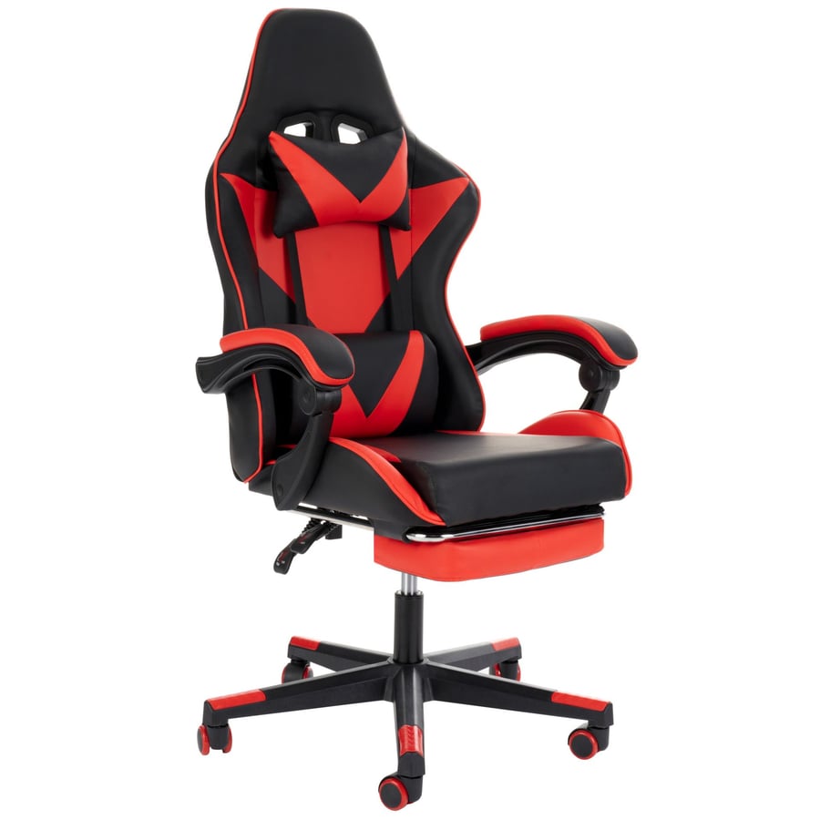 Ergonomischer Schreibtischstuhl Ragazo in Rot von di volio, Gamingstuhl mit Lenden- und Nackenkissen & Fußstütze, bis 150kg belastbar.