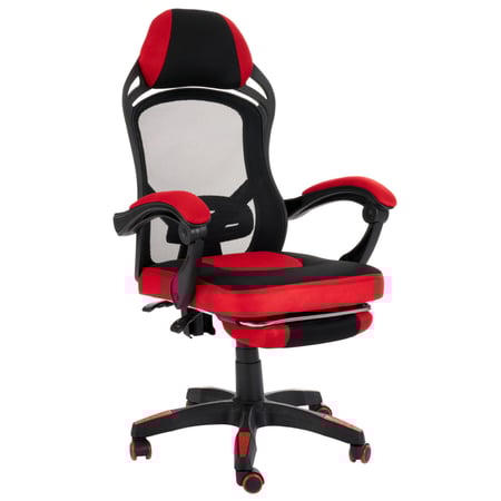 Gamingstuhl Sporte in Rot von di volio, ergonomischer Bürostuhl mit Kopf- und Fußstütze, aus luftigem Netzgewebe für maximalen Komfort.