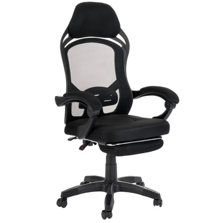 Gamingstuhl Sporte in Schwarz von di volio, ergonomischer Bürostuhl mit Kopf- und Fußstütze, aus luftigem Netzgewebe für maximalen Komfort.