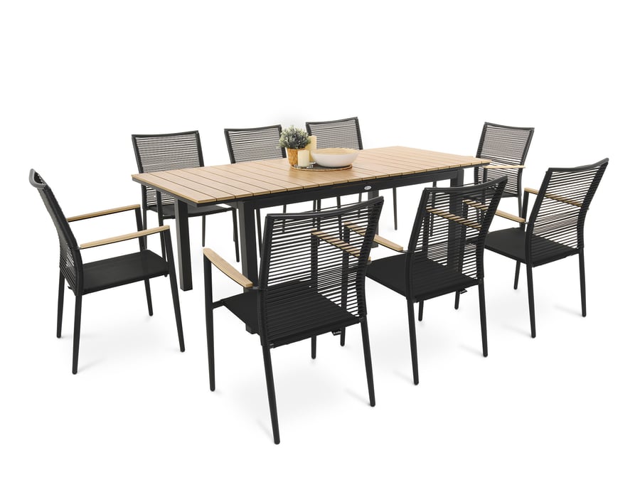 Gartenmöbel-Set Mozzate für 8 Personen, ausziehbarer Tisch aus Aluminium und Kunstholz, 8 x stapelbare Stühle, robust uns stabil.