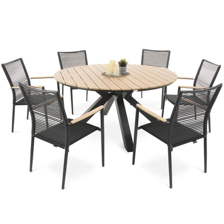 Gartenmöbel-Set Orvieto für 6 Personen, runder Esstisch 150 cm & 6 Stühle, aus Kunstholz und Aluminium, robust und wetterfest.