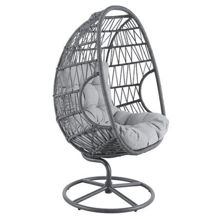 Gummierte Standfüße in der Basis erhöhen die Stabilität und schützen den Untergrund. Das weiche Kissen und der handgeflochtene Kokon sorgen sowohl im Garten als auch im Wohnbereich für hohen Sitzkomfort.