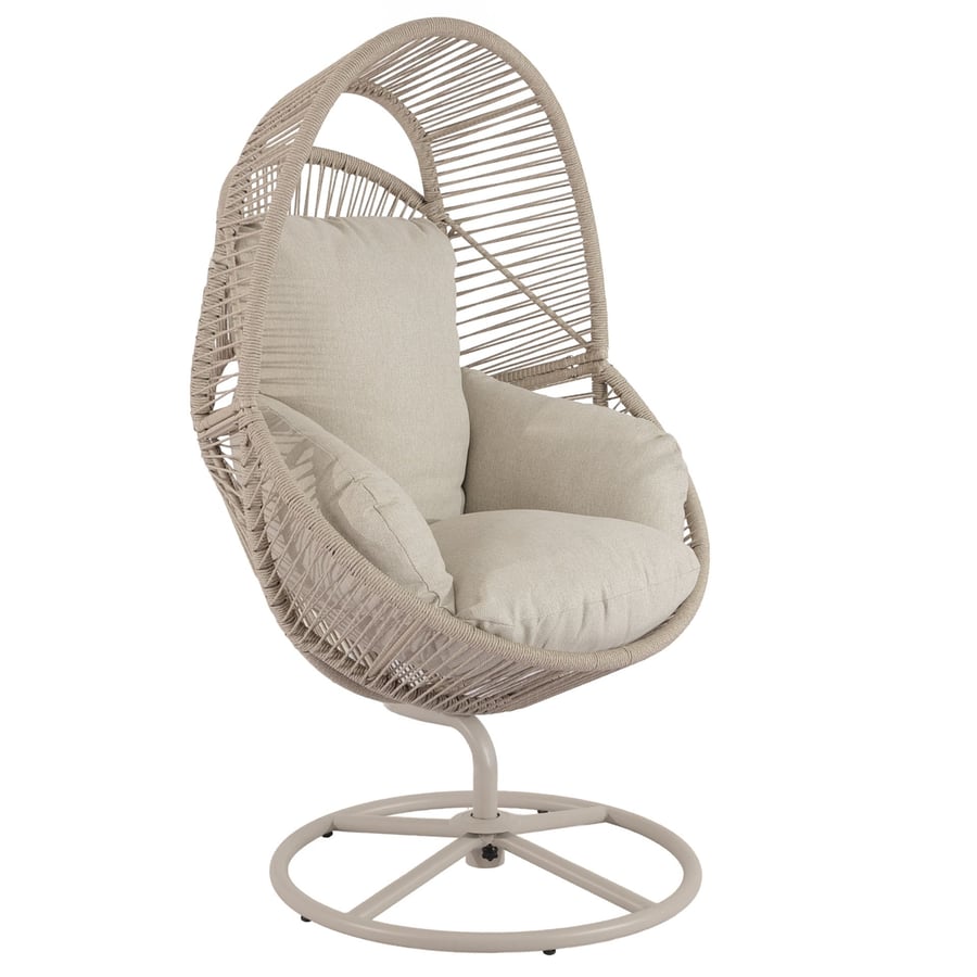 Der Kokon des Sessels besteht aus langlebigem PE-Rattan in einem beigen Farbton. Das handgeflochtene Polyrattan ist beständig gegen Sonne, Feuchtigkeit und Temperaturschwankungen. Der Sessel verformt sich nicht und bleicht nicht aus – für dauerhafte Qualität über viele Jahre.