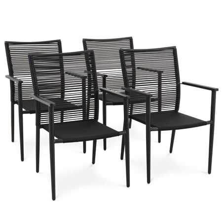 4er Set Gartenstühle Codi - Schwarz von di volio, elegant und modern, hergestellt aus Aluminium, Polyrattan und Gewebe Textilene, stapelbar.