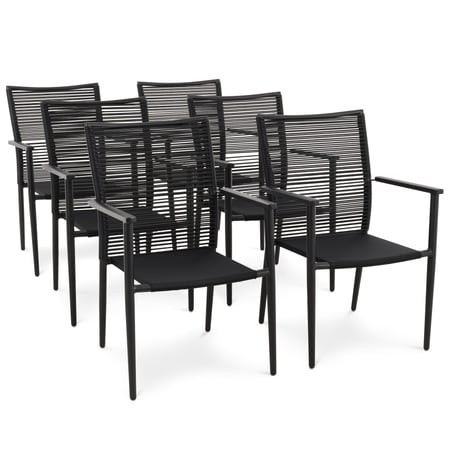 6er Set Gartenstühle Codi - Schwarz von di volio, elegant und modern, hergestellt aus Aluminium, Polyrattan und Gewebe Textilene, stapelbar.