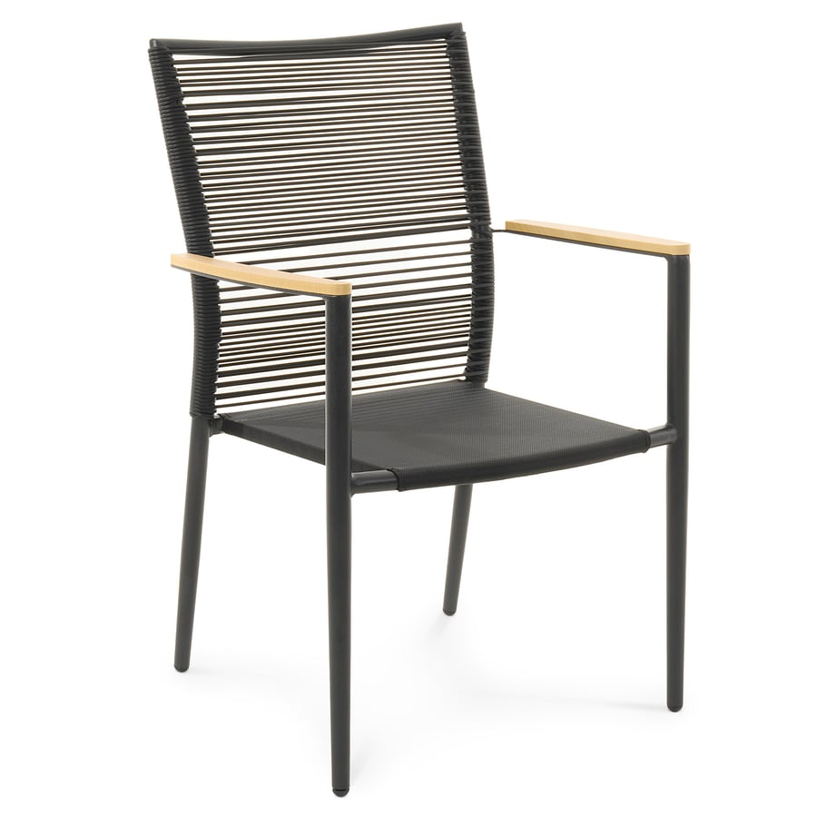 Die Aluminiumkonstruktion des Gartenstuhls ist äußerst robust und resistent gegen Feuchtigkeit, Korrosion und Verblassen durch UV-Strahlung. Ein weiterer Vorteil des Aluminiumrahmens ist sein geringes Gewicht. Dadurch lassen sich die Gartenmöbel schnell und einfach bewegen. Sie können sie nach Belieben arrangieren und an Ihre aktuellen Bedürfnisse anpassen. Der mattschwarz lackierte Rahmen verleiht dem Gartenstuhl Eleganz.