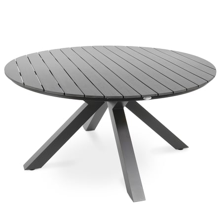 Rundrer Gartentisch 150cm Ravello Schwarz von di volio, Aluminium-Konstruktion und Tischplatte aus Kunstholz, mit Nivellierfüßen.