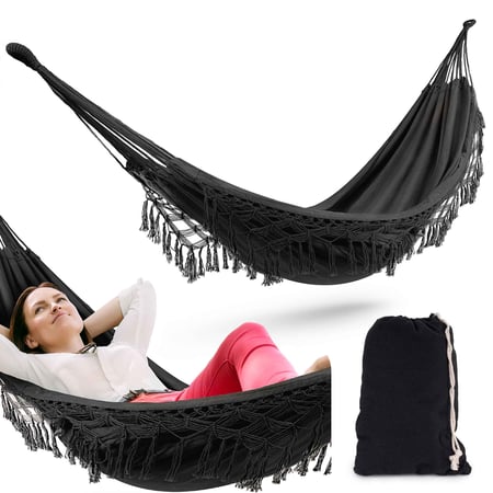 Brasilianische Hängematte BARI von di volio, atmungsaktiv, langlebiges Material in schwarz. Maximale Belastung von 120kg. Kostenlose Lieferung. Jetzt zugreifen!