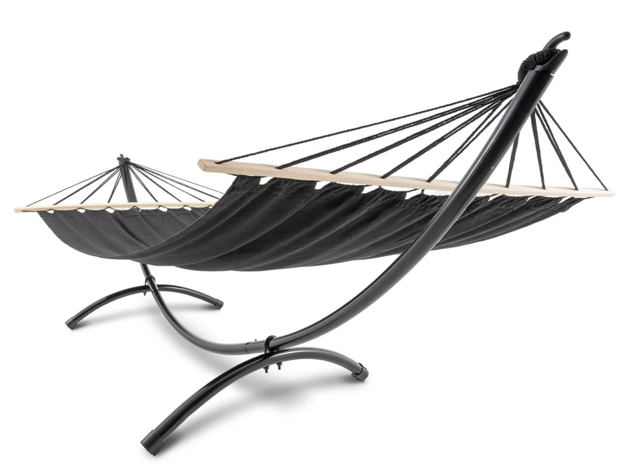 Das funktionelle Gestell sorgt dafür, dass Sie die Hängematte aufstellen können, wo immer Sie wollen – im Garten unter Ihrem Lieblingsbaum, auf der Terrasse oder auf dem Balkon. Die Konstruktion aus pulverbeschichtetem Stahl ist stabil, langlebig und korrosionsbeständig und somit sicher. Dank der Klappfunktion können Sie die Hängematte leicht verstauen und sogar mit in den Schrebergarten nehmen. Sie lässt sich auch am Wochenende außerhalb der Stadt nutzen. Die Hängematte ist bis 120 kg belastbar.
