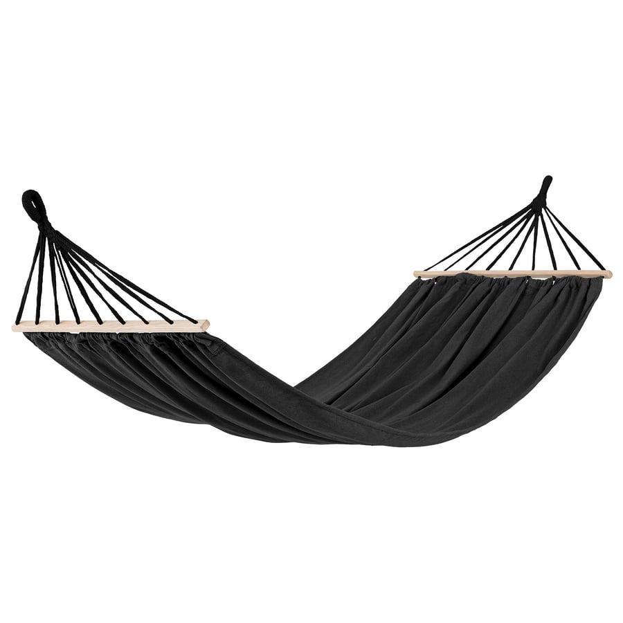 Hängematte Lecco von di volio, ideal für zwei Personen, mit Holz-Spreizstangen, langlebiges und luftiges Material in dunkelgrau. Inkl. Tragetasche. Jetzt bestellen!