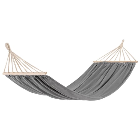Hängematte Lecco von di volio, ideal für zwei Personen, mit Holz-Spreizstangen, langlebiges und luftiges Material in hellgrau. Inkl. Tragetasche. Jetzt bestellen!