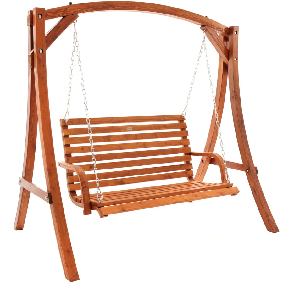 Der Hängesessel Grino besticht durch seine robuste Konstruktion aus Lärchenholz. Die Lärche, die für ihre Langlebigkeit und natürliche Schönheit bekannt ist, wurde zusätzlich imprägniert, was Witterungsbeständigkeit garantiert. Das Gestell und die Schaukel aus massivem, gebogenem Holz sehen äußerst elegant aus. Zudem sind sie für Stabilität und Sicherheit beim Gebrauch verantwortlich. Für eine gleichmäßige Bewegung beim Schaukeln sorgt der Sitz, der an robusten verzinkten Ketten aufgehängt wird.