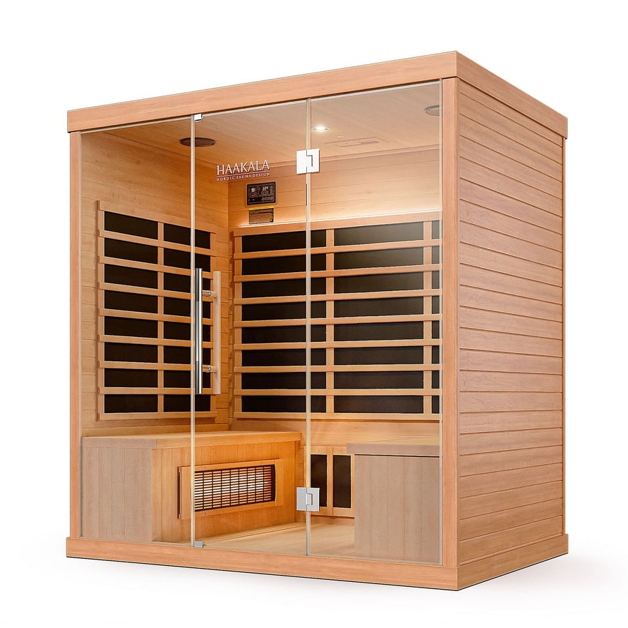 Mit den Maßen 180 x 120 x 189 cm, einer Leistung von 2970 W und einer Spannung von 230 V verwandelt diese geräumige Vier-Personen-Infrarotkabine jeden Wohnraum in ein professionelles Wellness-Center. Entscheiden Sie sich für die Trockensauna Kuhmo IV, um Gesundheit, Komfort und Ästhetik auf höchstem Niveau zu genießen – bequem in Ihren eigenen vier Wänden.