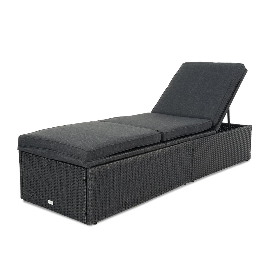 Gartenliege Asco in Grau von di volio, Relaxliege aus Polyrattan-Geflecht und robustem Stahl, dicke Polsterauflage, mit verstellbarer Rücklehne.