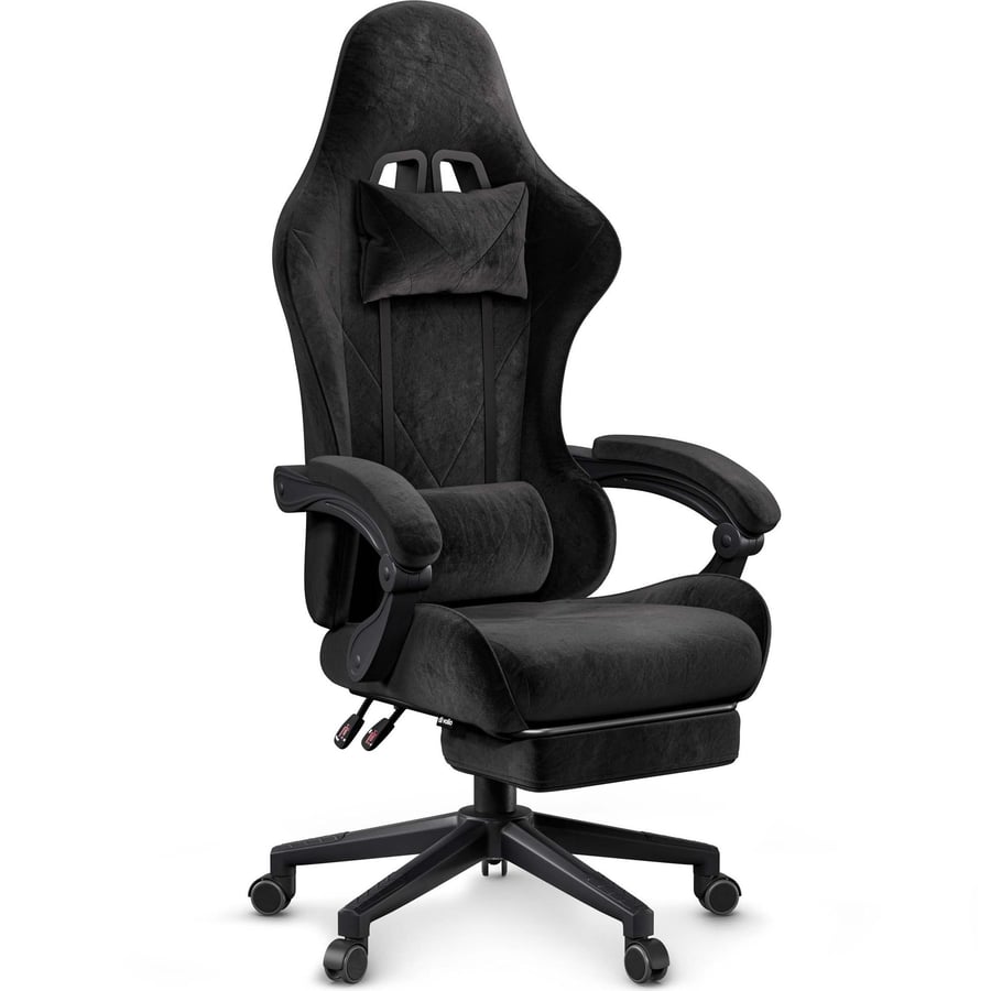 Ragazo spojuje ergonomii s výrazným stylem. Černé barevné provedení upoutá pozornost. Sametový materiál a silná pěna zajišťují pohodlí na dlouhá léta. Stabilní nylonová základna o průměru 66 cm a nosnost až 150 kg garantují bezpečnost a pevnou oporu. Je to křeslo, které s vámi udrží krok – při hře i mimo ni.