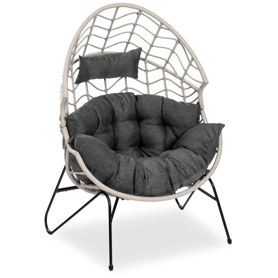 Křeslo Alcamo je mimořádně pohodlný kus nábytku, který vám umožní vytvořit dokonalé místo k odpočinku a relaxaci ve vaší zahradě, na terase, na balkoně nebo i v interiéru. Prostorná sedačka ve tvaru zaobleného košíku - vajíčka, podšitá velkým, měkkým polštářem, poskytuje výjimečné pohodlí při relaxaci. Prolamovaná konstrukce koše je vyrobena z odolné oceli s výpletem z technoratanu, který zaručuje jeho trvanlivost a odolnost vůči povětrnostním vlivům. Technorattanové tkaní komponované do geometrického pravidelného motivu dodává nábytku stylový, moderní charakter, díky čemuž je křeslo Alcamo ideální jako originální alternativa k tradičnímu salonku. Nohy s nastavitelnými, vyrovnávacími nožičkami umožňují stabilní umístění křesla i na nerovném povrchu.