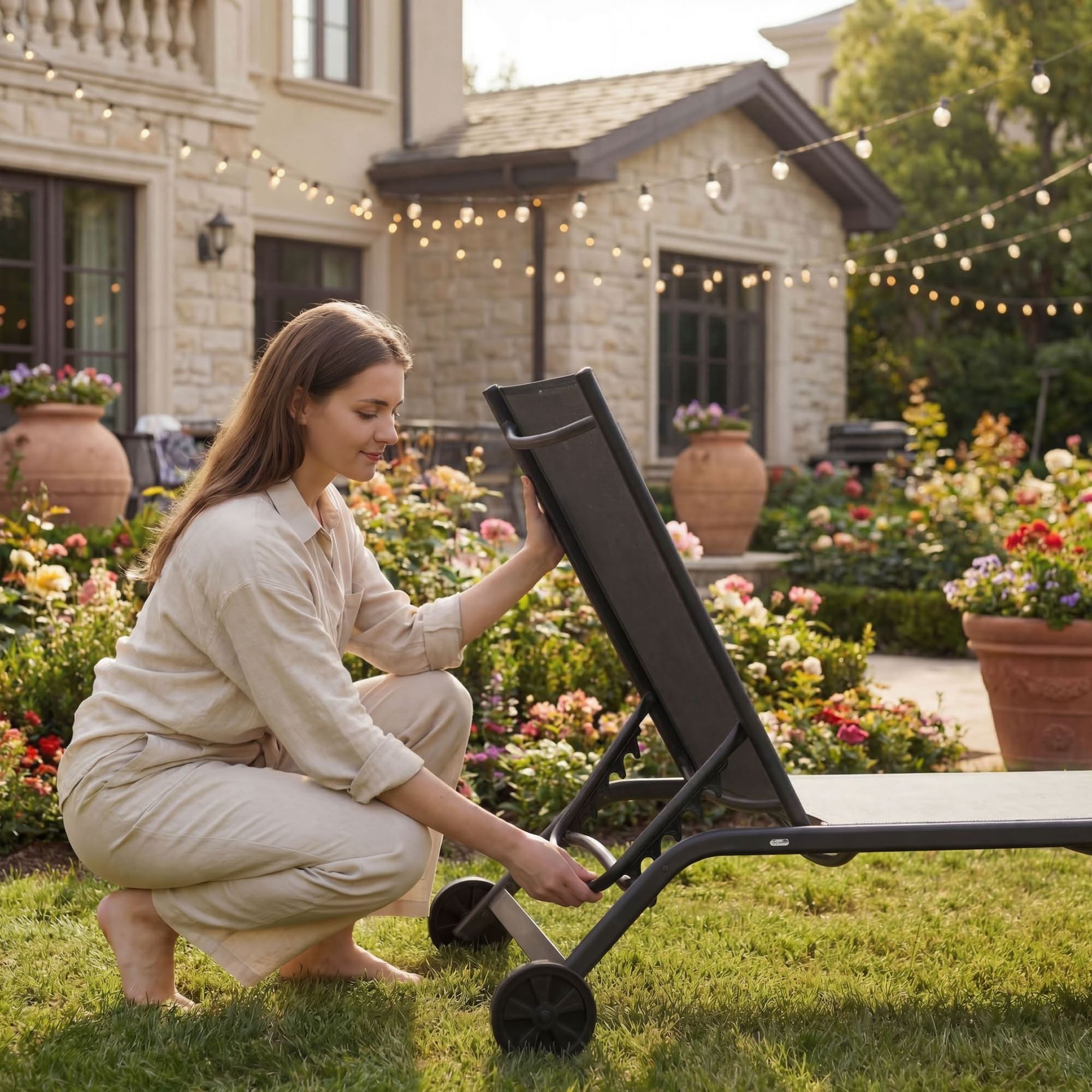 Toto zahradní lehátko Vám dává plnou kontrolu nad odpočinkem – přesně tak, jak Vám to vyhovuje. 5 úrovní nastavení opěradla Vám umožní rychle zvolit ideální úhel: od vzpřímenější polohy na čtení, přes pololeh na opalování až po téměř rovnou pozici na zdřímnutí – vše jedním pohybem a bez námahy. Když si chcete lehnout a skutečně vypnout, funkce rozložení do roviny z něj udělá pohodlné lehátko připravené na odpolední relax i slunečné opalování.