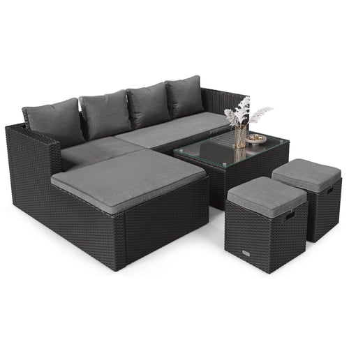 Zahradní nábytek Bologna značky di volio představuje praktickou i pohodlnou soupravu, která díky spojení relaxační funkce a kávového setu skvěle poslouží jak při odpočinku na čerstvém vzduchu, tak při setkáních s vašimi blízkými. Sestava se skládá z prostorné rohové pohovky s funkcí lehátka, dvou taburetů a konferenčního stolku s deskou z tvrzeného skla. Nábytek je vyroben z ručně tkaného technorattanu, který svým vzhledem připomíná přírodní ratan, ale je mnohem odolnější a plně rezistentní vůči nepříznivým povětrnostním vlivům. Sedáky i opěradla jsou opatřeny měkkými polštáři, které zaručují maximální komfort. Moderní design soupravy Bologna kombinuje modernistické, kubické tvary s přirozeným vzhledem výpletu. Díky tomu bude nábytek vypadat skvěle na každé zahradě či terase bez ohledu na styl aranžmá.
