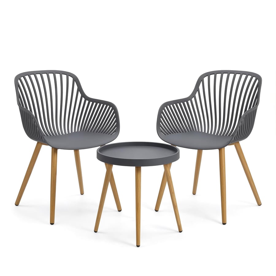 Objevte šedou zahradní sestavu, ve které se estetika potkává s chytrou technologií. Ocelové nohy s termotransferovým potiskem v dekoru dřeva dodávají celku útulný skandinávský charakter. Tato 2místná sada využívá odolný polypropylen, takže se nemusíte bát blednutí barvy ani poškození materiálu vlivem proměnlivého počasí. Každé křeslo i stolek mají nacvakávací ochranné podložky, které chrání terasová prkna a snižují riziko vzniku škrábanců. Díky průměru desky 49,5 cm snadno využijete i menší balkonový prostor a budete si užívat pohodlí každý den.