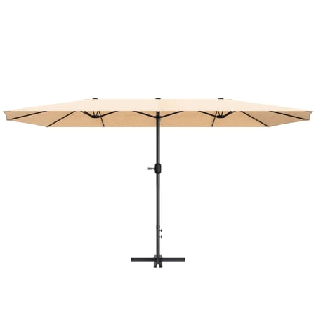Béžový zahradní slunečník Castela DV-147GU poskytuje příjemný stín. Voděodolný materiál, ocelová konstrukce a UV filtr 50+ zajišťují komfort a dlouhou životnost.