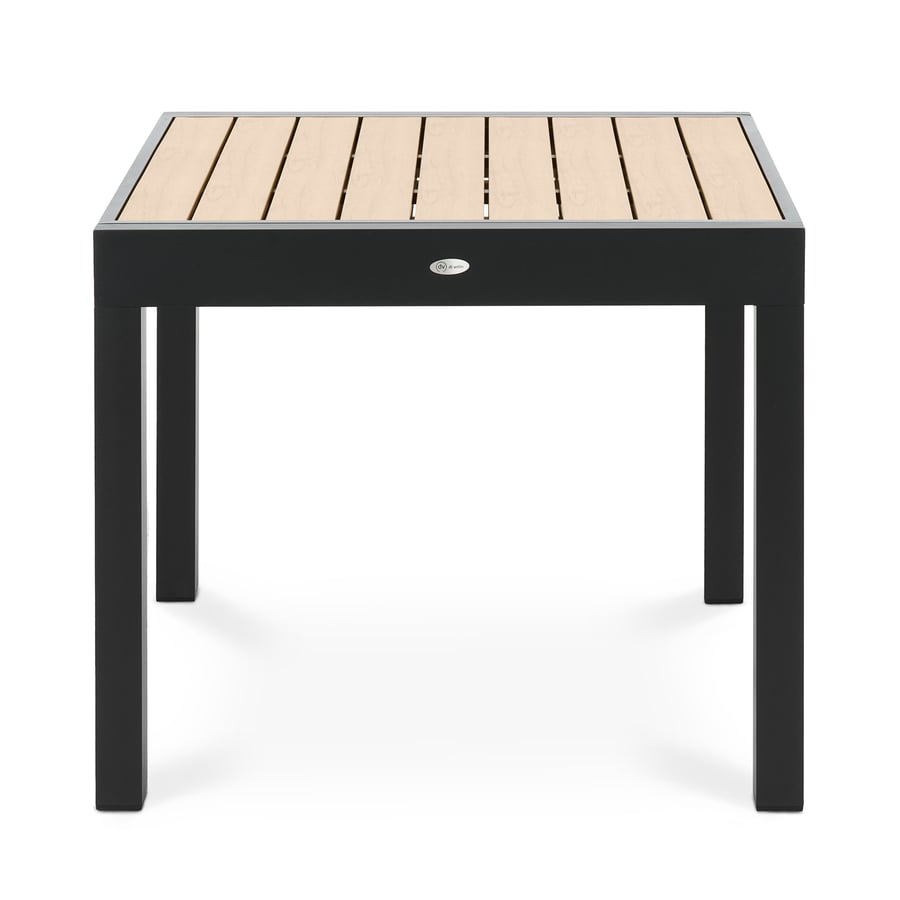 Roztahovací zahradní stůl Comlo od di volio je funkčním kusem nábytku, který se perfektně hodí do zahrady a na terasu, zejména během rodinných setkání a společného stolování venku. Stůl byl navržen s ohledem na pohodlí při používání, odolnost a elegantní design. Materiály použité k jeho výrobě - hliník s práškovým nástřikem v matné černé barvě a materiál polywood, který dokonale reprodukuje přirozený vzhled dřeva, zaručují nábytku trvanlivost a odolnost vůči různým povětrnostním vlivům. Díky modernímu jednoduchému tvaru a univerzálním barvám bude stolek Comlo vypadat dobře v jakémkoli prostoru, bez ohledu na styl.
