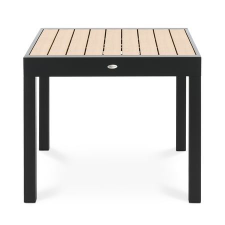 Černý rám stolu je vyroben z odolného hliníku s antikorozními vlastnostmi, díky čemuž je stůl vysoce pevný a odolný vůči vlhkosti. Výhodou hliníkové konstrukce je také její lehkost. Hliníkový zahradní nábytek je mobilnější a snadněji se přesouvá, což je důležité zejména u velkých modelů, jako jsou jídelní stoly.