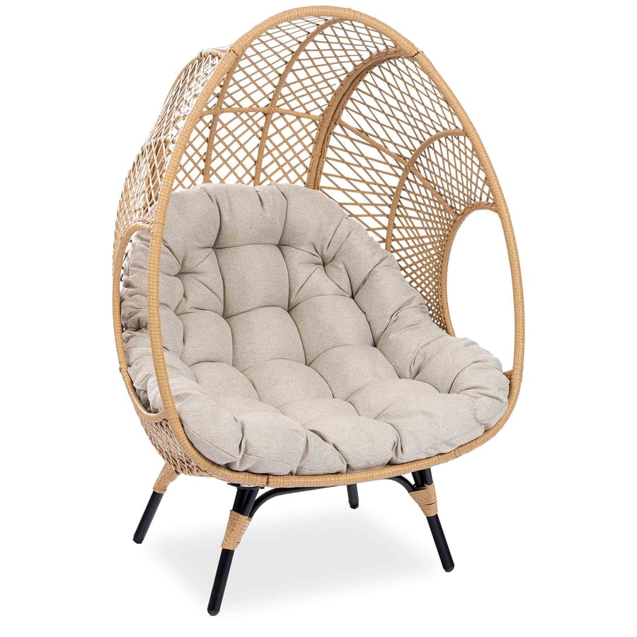 Der durchbrochene Korb ist aus hochwertigem Polyrattan in Beige handgeflochten. Die Polyrattan-Fasern sind dem natürlichen Rattan fast täuschend ähnlich und verleihen dem Relaxsessel einen natürlichen Charakter. So erinnert seine Optik an traditionelle Geflechtmöbel. Der Vorteil von Polyrattan liegt nicht nur in seiner Ästhetik, sondern auch in seiner außergewöhnlichen Haltbarkeit. Dieser moderne Kunststoff ist sehr witterungsbeständig. So können Sie den Relaxsessel Adria bei jedem Wetter im Freien aufbewahren, ohne befürchten zu müssen, dass er beschädigt wird.