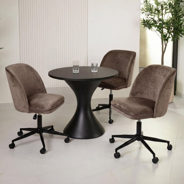 Die Rückenlehne stützt den Rücken dank des inneren Metallrahmens und einer Schicht aus dichtem Schaumstoff. Bezogen ist das Ganze mit angenehm weichem Velours in einem warmen Braunton. Als Büro-Drehstuhl aus Velours bringt Famo den Eindruck von durchdachter Eleganz und gestalterischer Harmonie in den Raum. Er ist auch eine perfekte Wahl für alle, die ihr Homeoffice einrichten und Wert auf Ästhetik und Komfort in einem legen.