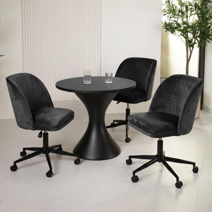 Die schlanke, durchdachte Form von Fano verleiht ihm einen modernen Ausdruck und sorgt gleichzeitig dafür, dass er sowohl im Arbeitszimmer als auch im Wohnbereich bestens zur Geltung kommt. Seine sorgfältig ausgearbeiteten Details machen ihn zu einem eleganten Bürostuhl fürs Wohnzimmer, ohne die Einrichtung optisch zu dominieren. Die schlanke Silhouette in schwarzem Velours wirkt zeitlos und unterstreicht dezent den Charakter des Interieurs.