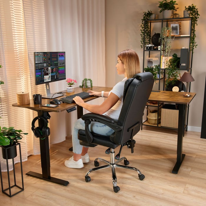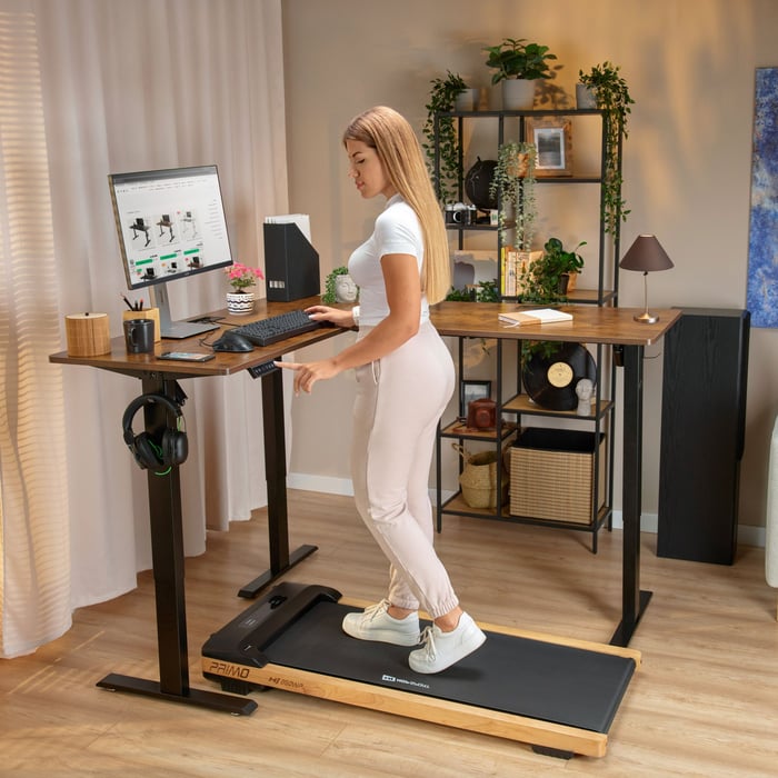 Diese Lösung ist von großer Bedeutung für die Gesundheit: Häufige Positionswechsel während der Arbeit verbessern die Durchblutung, reduzieren Ermüdungserscheinungen, beugen Rücken- und Nackenschmerzen vor und wirken sich positiv auf die Konzentration aus. Außerdem lässt sich der höhenverstellbare Schreibtisch Montaro gut mit einem Walking Pad kombinieren und ist somit eine moderne und gesunde Alternative zum klassischen Arbeitsplatz.