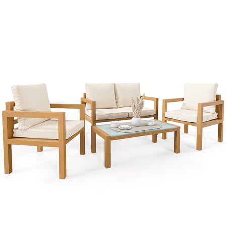 Die Möbel sind aus haltbaren, pulverbeschichteten Aluminiumrahmen montiert. Dadurch sind Schweißnähte weniger sichtbar und die Konstruktion des Gartenmöbel Sets ist korrosionsbeständiger.