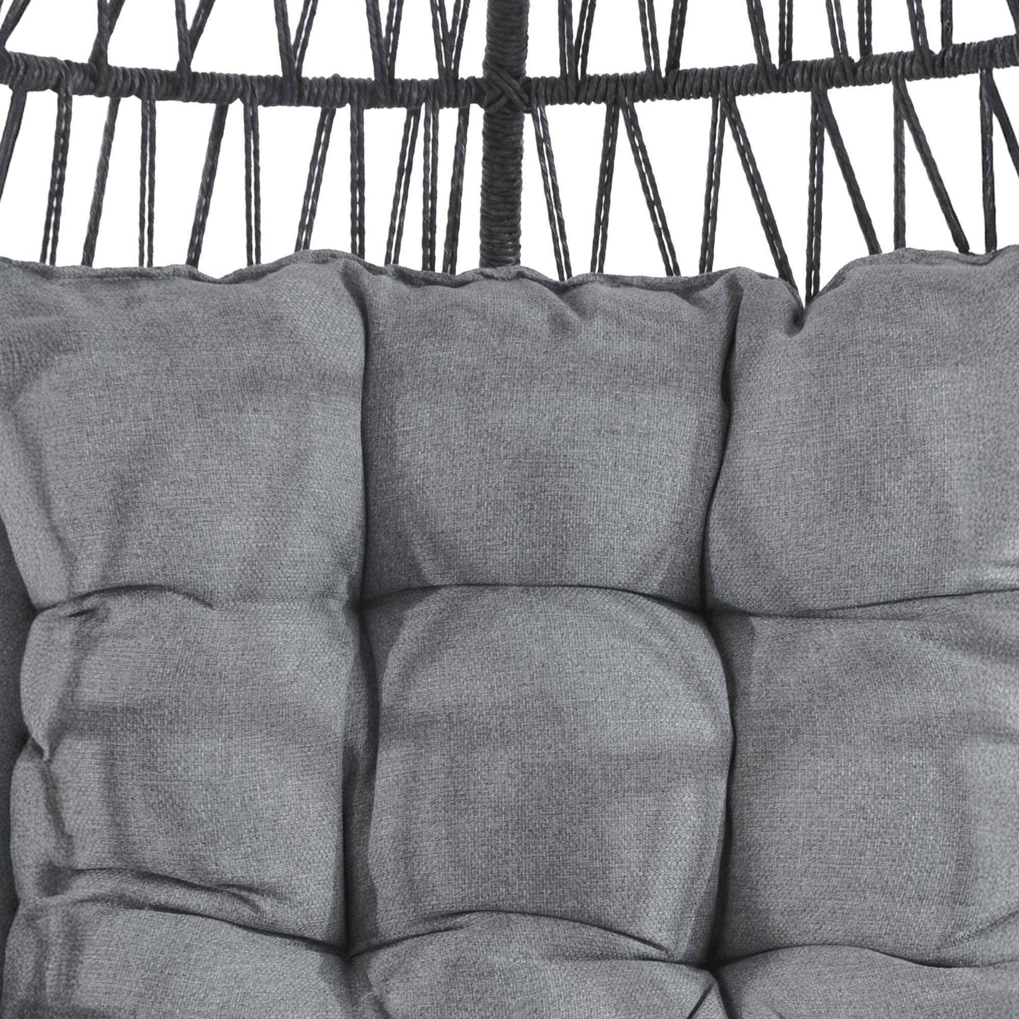 Gummierte Standfüße in der Basis erhöhen die Stabilität und schützen den Untergrund. Das weiche Kissen und der handgeflochtene Kokon sorgen sowohl im Garten als auch im Wohnbereich für hohen Sitzkomfort.