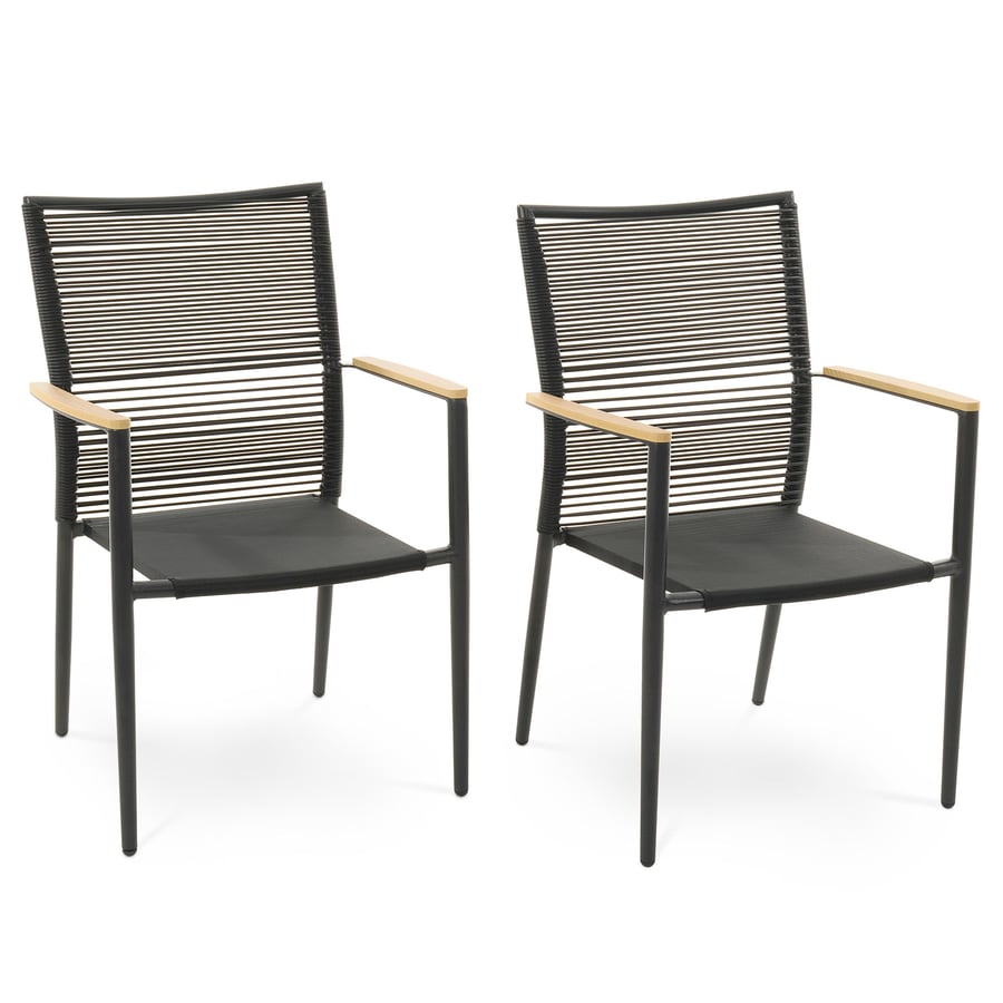 2er Set Gartenstühle Asti von di volio wurden mit Fokus auf Komfort und Funktionalität entworfen. Die Kombination einer leichten, aber sehr robusten Aluminiumkonstruktion mit hochwertigem Polyrattan und dem Gewebe Textilene, aus denen die Rückenlehne und die Sitzfläche gefertigt sind, sorgt für eine hohe Haltbarkeit und Witterungsbeständigkeit des Möbelstücks. Die Armlehnen aus Kunstholz, das Holz perfekt imitiert, runden das gesamte Erscheinungsbild ab. Mit seiner modernen, schlichten Form und seiner universellen Farbgebung (gedeckte Töne von Grau, Schwarz und Naturbeige) ist der Stuhl ein idealer Einrichtungsgegenstand für jeden Garten oder jede Terrasse. Er fügt sich perfekt in fast jede Einrichtung ein.