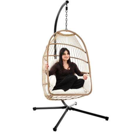 Entspannen Sie stilvoll mit dem Hängesessel Beluno! Robustes Design, wasserfeste Kissen & klappbar für Innen & Außen. Jetzt Ihren Wohlfühlort sichern!