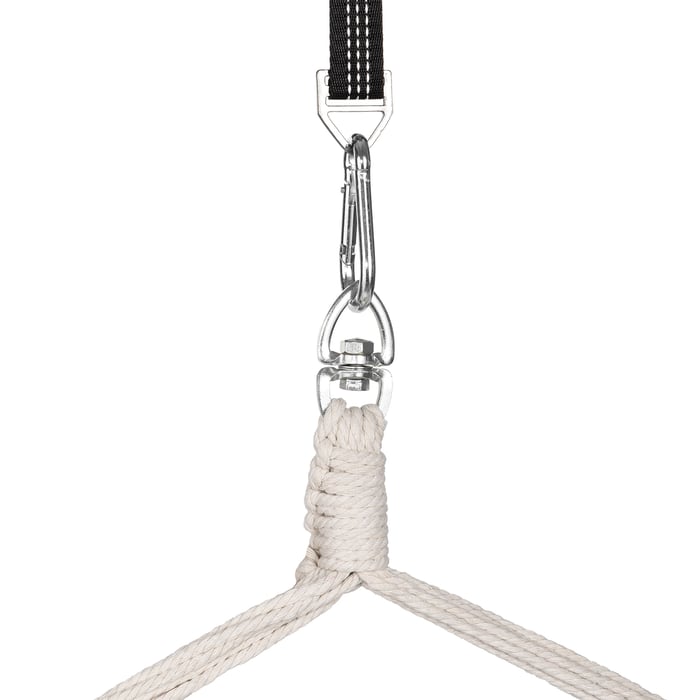 Die Montage des Hängesessels FIRA ist schnell und einfach. Im Garten hängen Sie ihn an einem dicken Ast auf, der ihn frei schwingen lässt. Im Haus oder auf dem Balkon befestigen Sie ihn an Haken, die eine Deckenmontage ermöglichen. Die Schaukel kann auf zwei Arten befestigt werden: an einer Holzstange und einem Haken oder mit zwei Hängegurten und zwei Haken. Alle Montageteile sind im Lieferumfang enthalten. Der Hängesessel ist bis zu 120 kg belastbar.