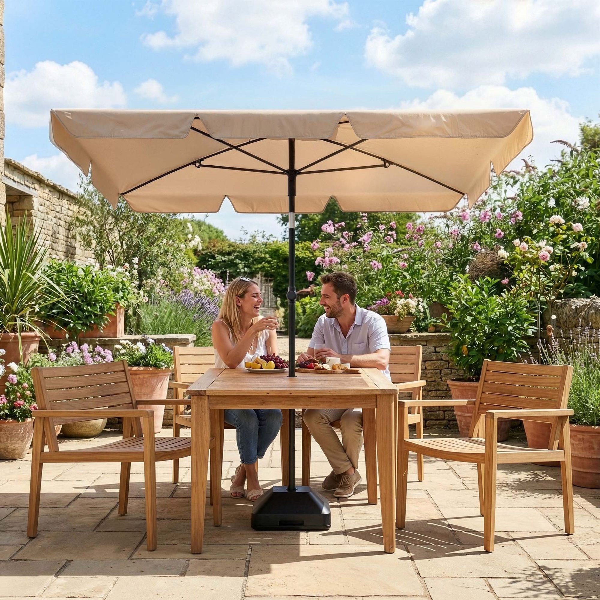 Der Gartenschirm Ankona DV-148GU bietet zuverlässigen Sonnenschutz genau dort, wo Sie ihn benötigen. Das Schirmdach mit den Maßen 200 × 125 cm sorgt für angenehmen Schatten auf dem Balkon, der Terrasse oder am Strand. Der 249 cm hohe Mast ermöglicht eine komfortable Platzierung über Tisch, Liege oder Gartenmöbeln. Ein vielseitiger Balkon- und Strandschirm für unterschiedliche Einsatzbereiche.