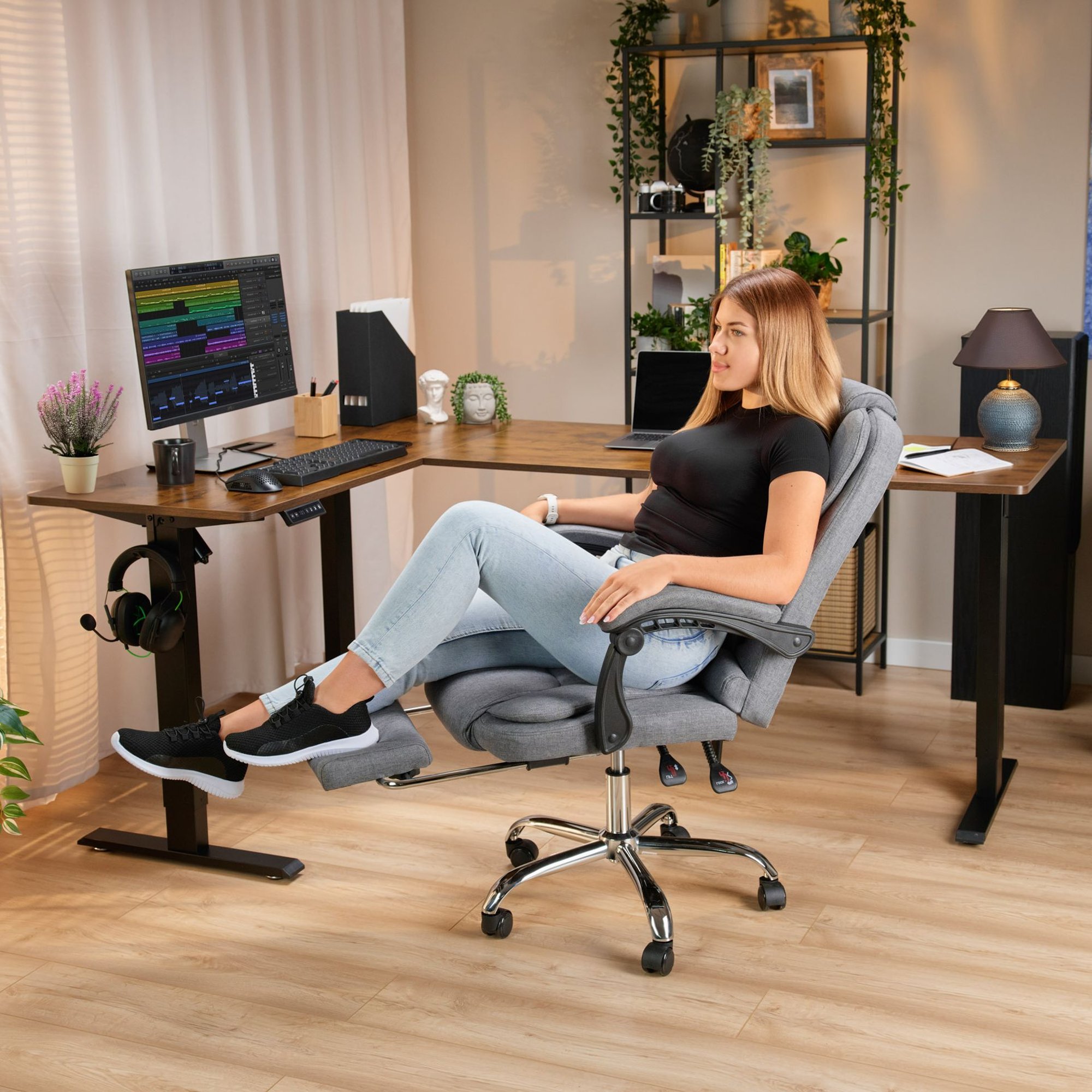 Uniwersalny wygląd sprawia, że Trani bez trudu wpasuje się w różne aranżacje. To połączenie wygody, estetyki i nowoczesnych funkcji, które tworzy komfortowe miejsce do codziennej, efektywnej pracy.