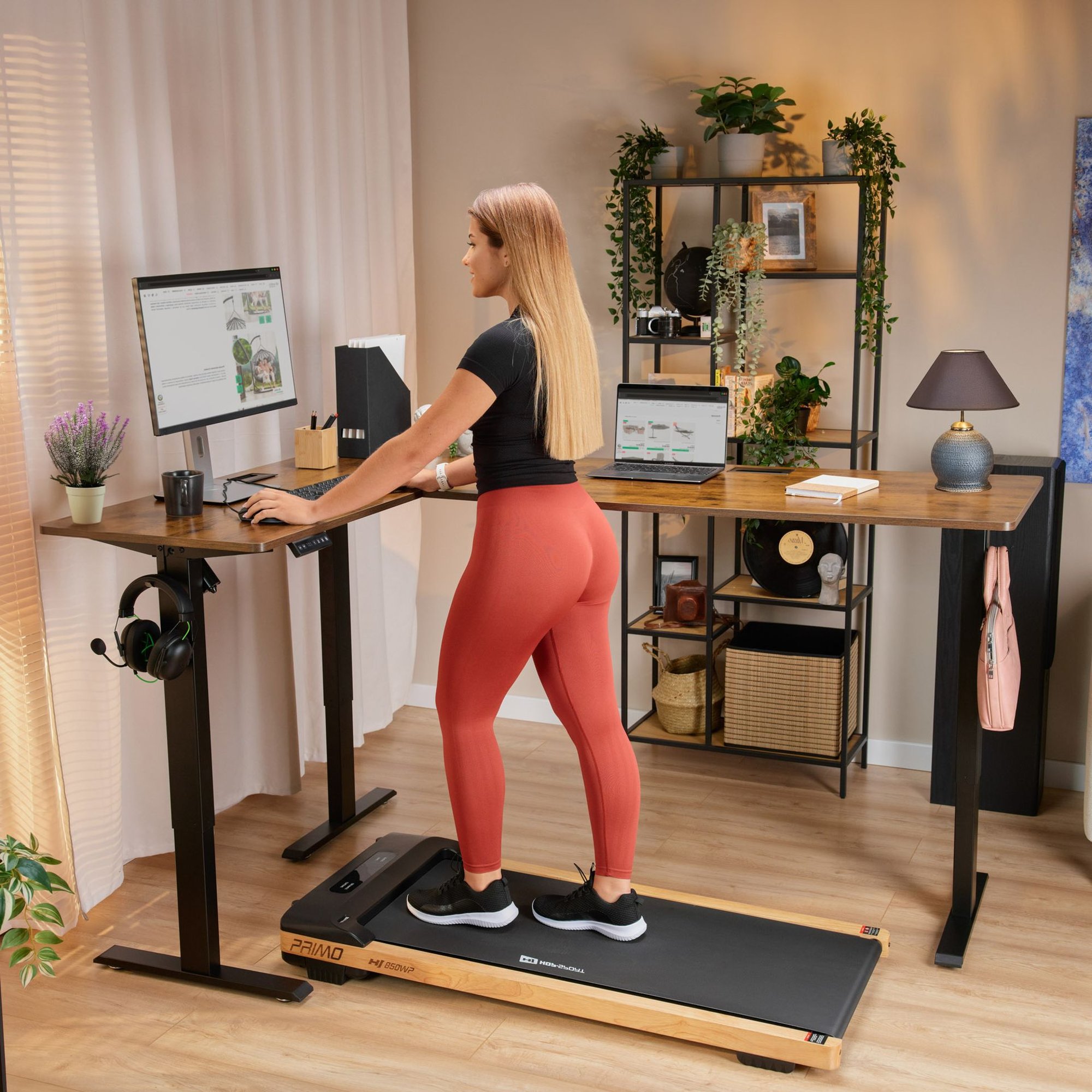 Stabilność biurka zapewnia solidna stalowa rama oraz trójnożna konstrukcja, która równomiernie rozkłada ciężar. Każdy z blatów wytrzymuje obciążenie do 80 kg, więc możesz bez obaw ustawić na nim cięższy sprzęt czy dodatkowe wyposażenie.