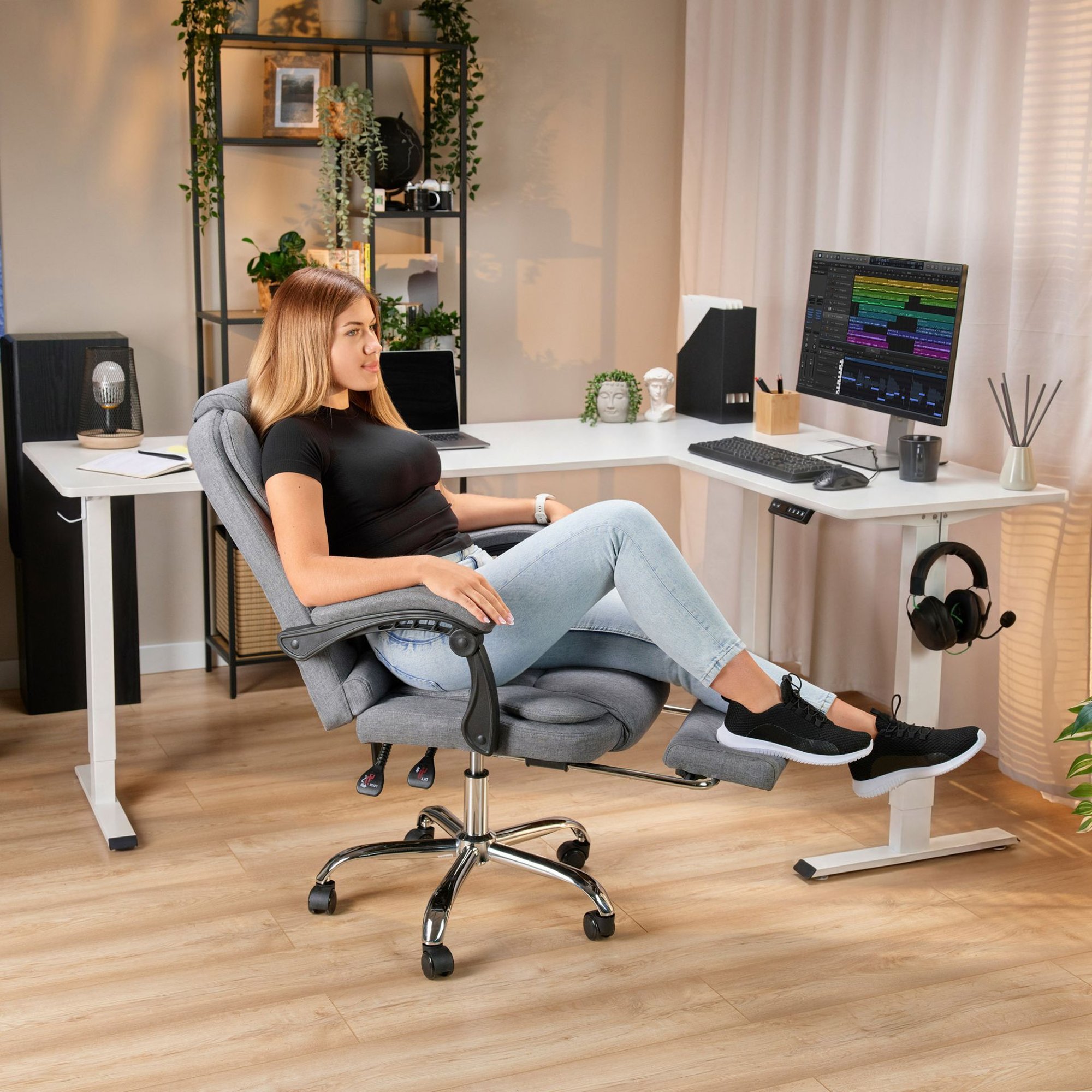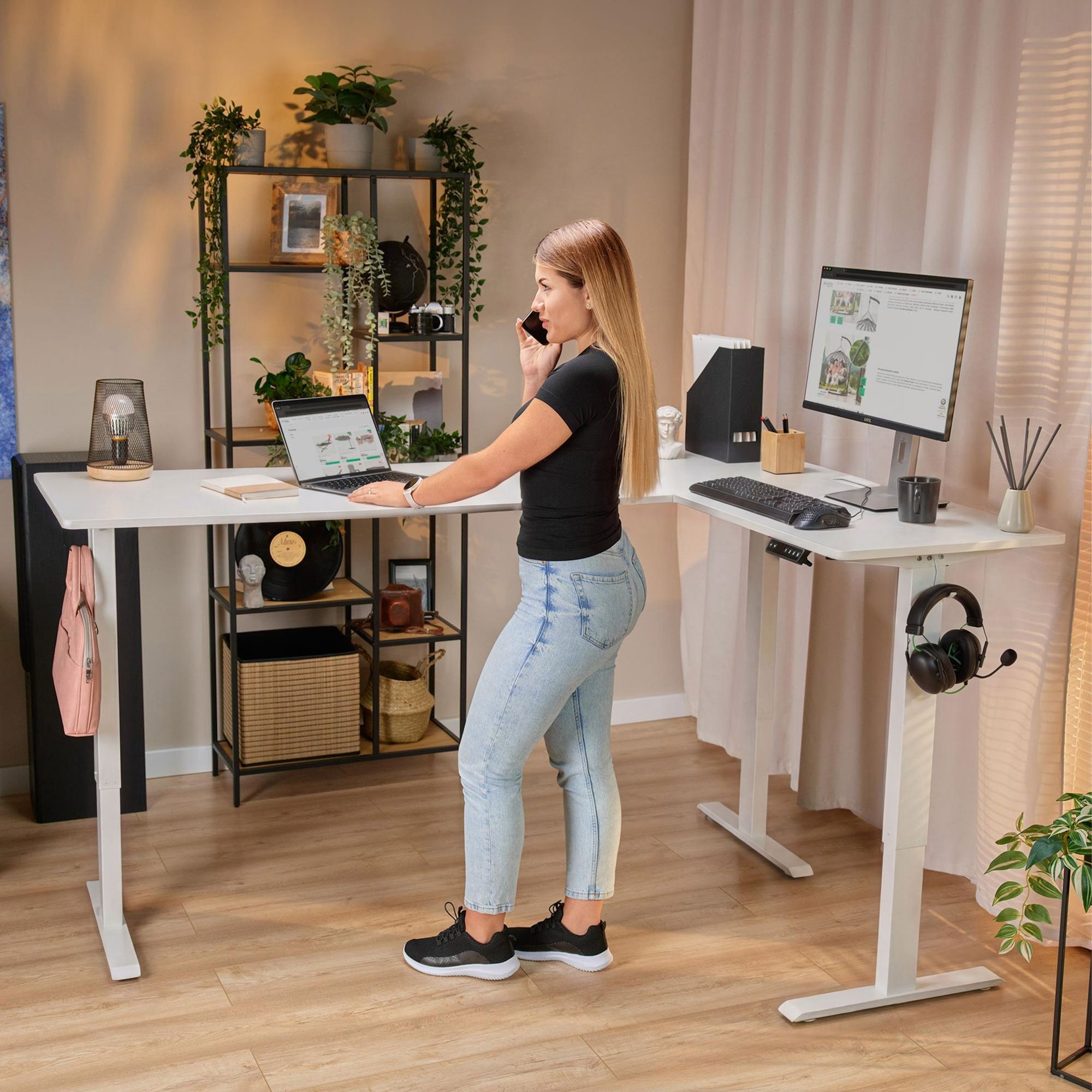 Zmiana pozycji w trakcie dnia sprzyja lepszej koncentracji i dodaje energii, dlatego biurko regulowane Trani świetnie się sprawdzi u osób, które spędzają wiele godzin przed komputerem i chcą zadbać o zdrową postawę w pracy.