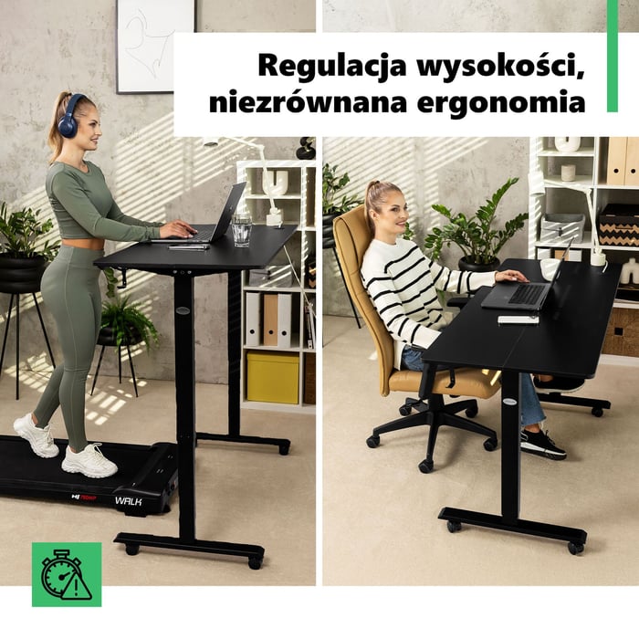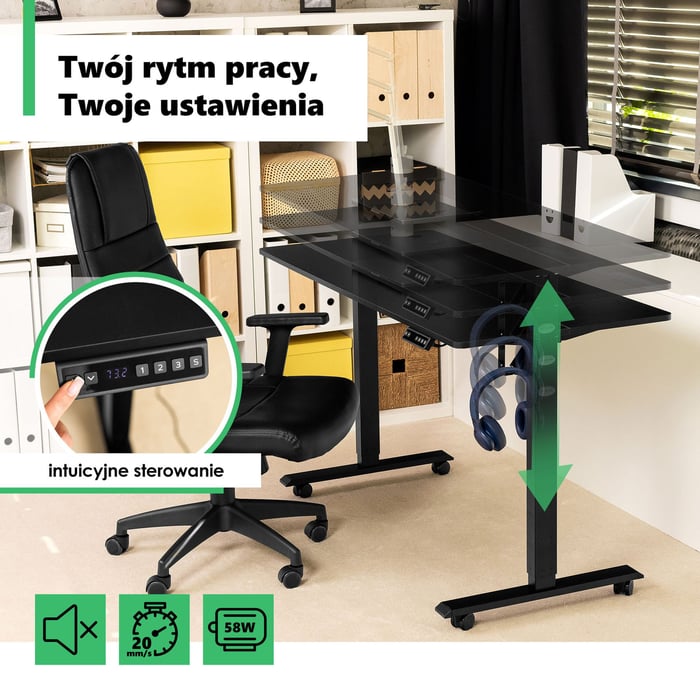 Biurko Biago z elektrycznym systemem regulacji wysokości zostało zaprojektowane z myślą o pracy zarówno na siedząco, jak i na stojąco. Wbudowany w konstrukcję biurka silnik elektryczny odpowiada za płynne i szybkie podnoszenie i opuszczanie blatu w zakresie od 76 cm do 118.5 cm, dzięki czemu z łatwością dostosujesz wysokość biurka do indywidualnych potrzeb. Biurko posiada również dodatkowe praktyczne funkcje, takie jak zapamiętywanie trzech ulubionych ustawień wysokości, blokadę wybranej pozycji oraz przypomnienie o długotrwałym siedzeniu. Wszystkimi opcjami można zarządzać za pomocą intuicyjnego panelu sterowania z czytelnym wyświetlaczem LCD. Biurko regulowane Biago wyróżnia solidna i stabilna konstrukcja łącząca stelaż z wytrzymałej stali węglowej oraz precyzyjnie wykonany dwuczęściowy blat z laminowanej płyty wiórowej. Nowoczesny design biurka, cechujący się prostotą i minimalizmem sprawia, że mebel będzie dobrze wpisywał się w przestrzeń firmowego i domowego biura.