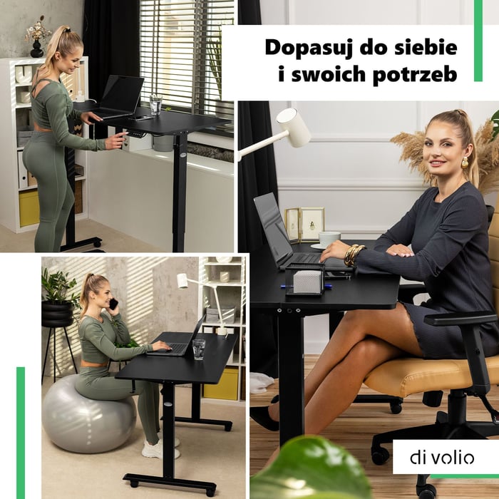 Biurko Biago posiada cichy i płynny system elektrycznej regulacji wysokości, który umożliwia wygodne podnoszenie i opuszczanie blatu roboczego z maksymalną prędkością 20 mm/sek, dzięki silnikowi elektrycznemu o mocy 58 W. Szeroki zakres regulacji (od 76 cm do 118.5 cm z ramą na kółkach) pozwala na dostosowanie biurka do pracy w pozycji siedzącej i stojącej. Możliwość precyzyjnego dopasowania wysokości biurka do indywidualnych potrzeb i sylwetki użytkownika pomaga w zachowaniu ergonomicznej pozycji ciała podczas wykonywania czynności zawodowych, co podnosi komfort pracy, sprzyja koncentracji i odciąża kręgosłup.