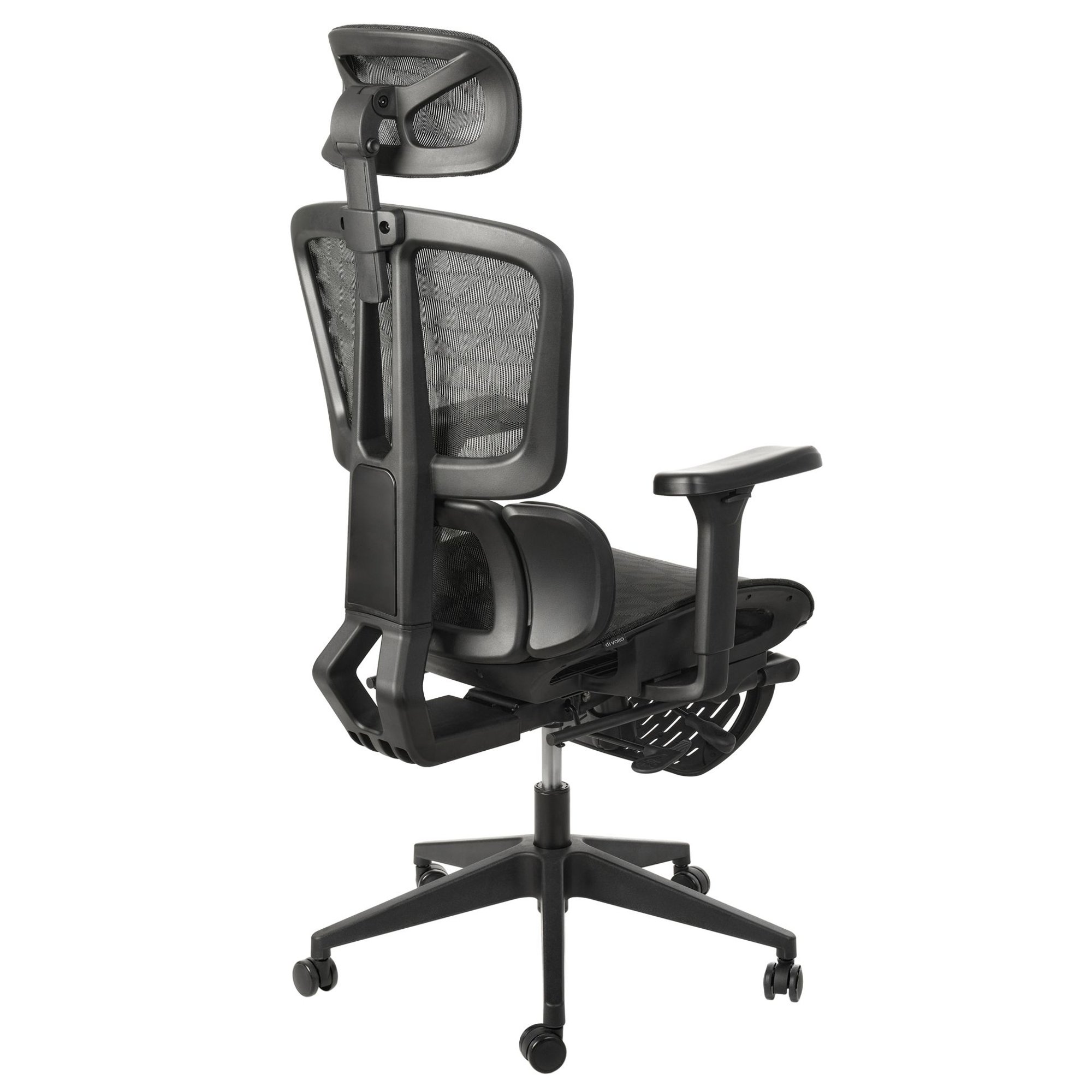 Fotel biurowy Romalo z regulowanym zagłówkiem i podłokietnikami. Przesuwane siedzisko i oddychająca siatka zapewniają wysoki komfort i ergonomię.