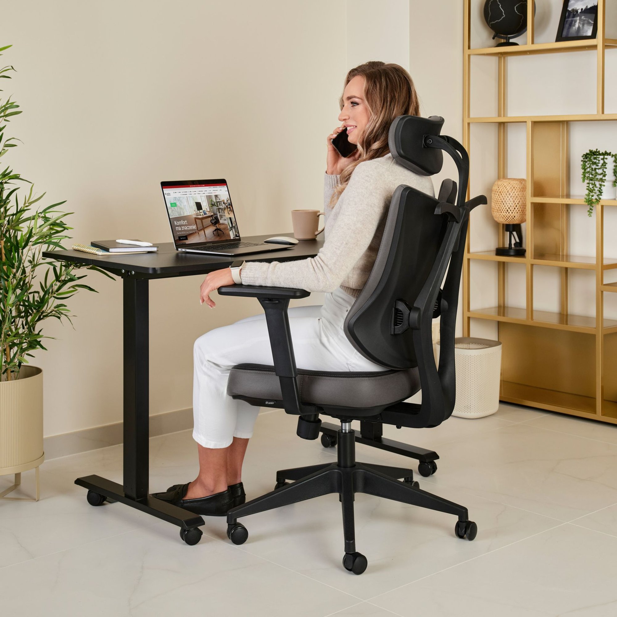 Fotel biurowy Loano marki di volio to nowoczesne i ergonomiczne rozwiązanie dla osób spędzających długie godziny przy biurku. Łączy w sobie innowacyjną konstrukcję, szerokie możliwości regulacji oraz wysokiej jakości materiały wykończeniowe. Dzięki swojej budowie zapewnia nie tylko wsparcie dla całego ciała, ale także estetyczny, profesjonalny wygląd idealnie wpisujący się w nowoczesne wnętrza biurowe i home office.