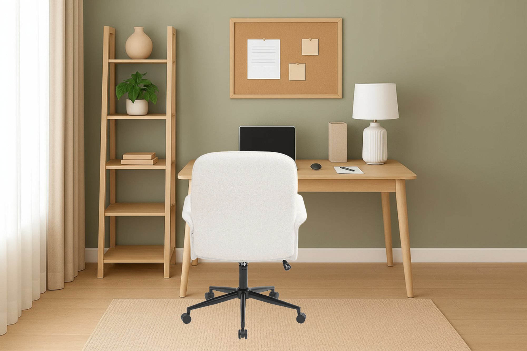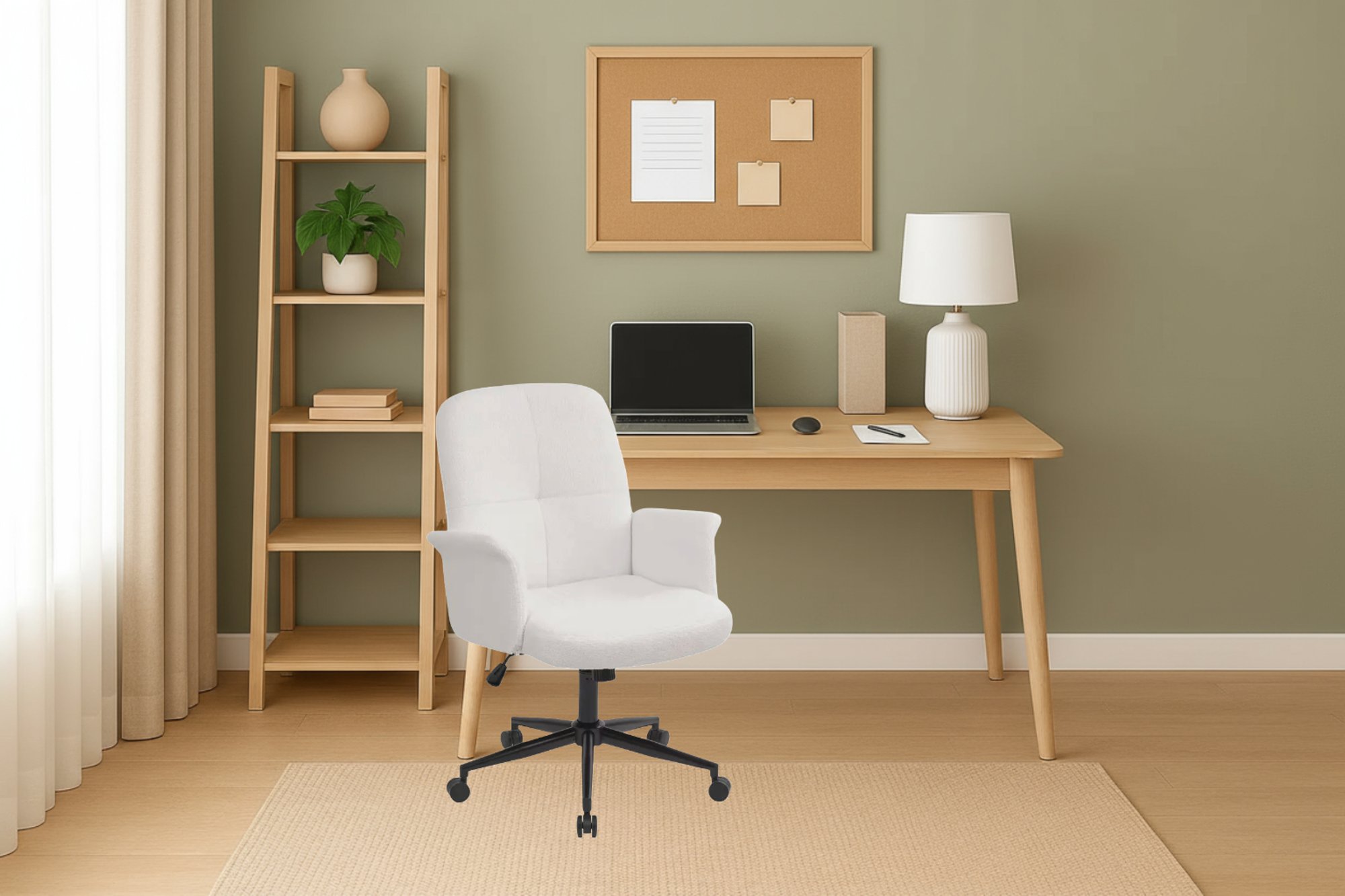 Fotel biurowy Parmo kremowy to esencja stylu, komfortu i funkcjonalności. Obrotowy, z miękkim, misiowym obiciem i regulowaną wysokością. Siedzisko z pianki i solidne oparcie zapewniają wygodę nawet podczas długich godzin pracy. Fotel posiada też regulację odchylenia oparcia, dzięki czemu możesz pracować, czytać lub odpoczywać w wygodnej dla siebie pozycji. Kółka 360° umożliwiają swobodne poruszanie się, a zdejmowany pokrowiec z zamkiem błyskawicznym ułatwia utrzymanie oparć fotela w czystości.