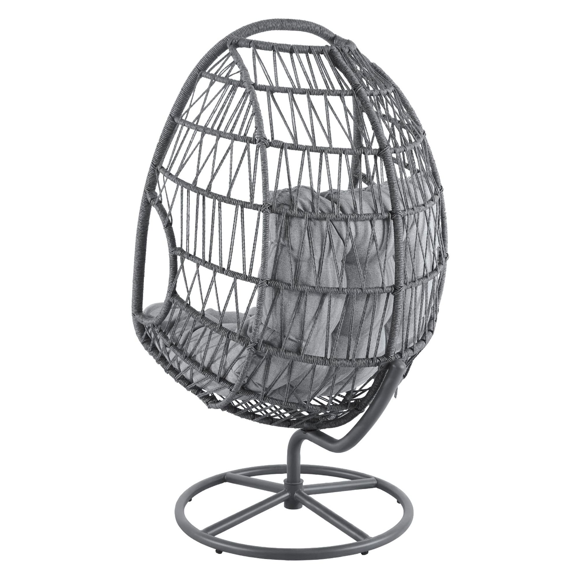 Fotel obrotowy Orta szary – wygodny kokon z miękką poduszką 15 cm, stabilna podstawa i nowoczesny design. Fotel na taras, balkon lub do domu.