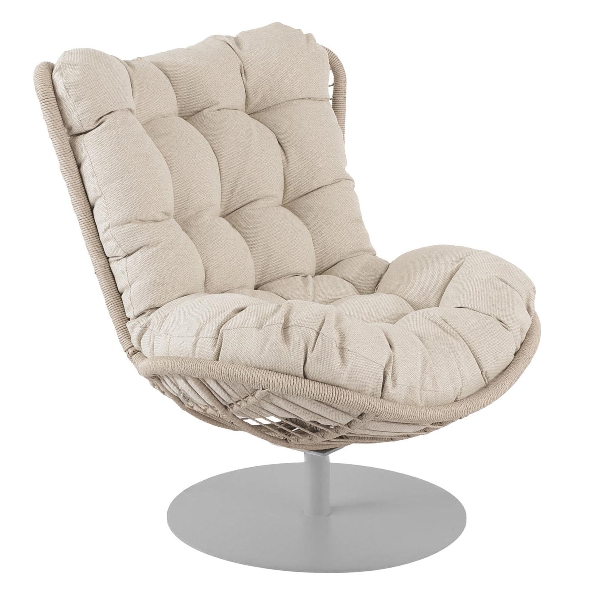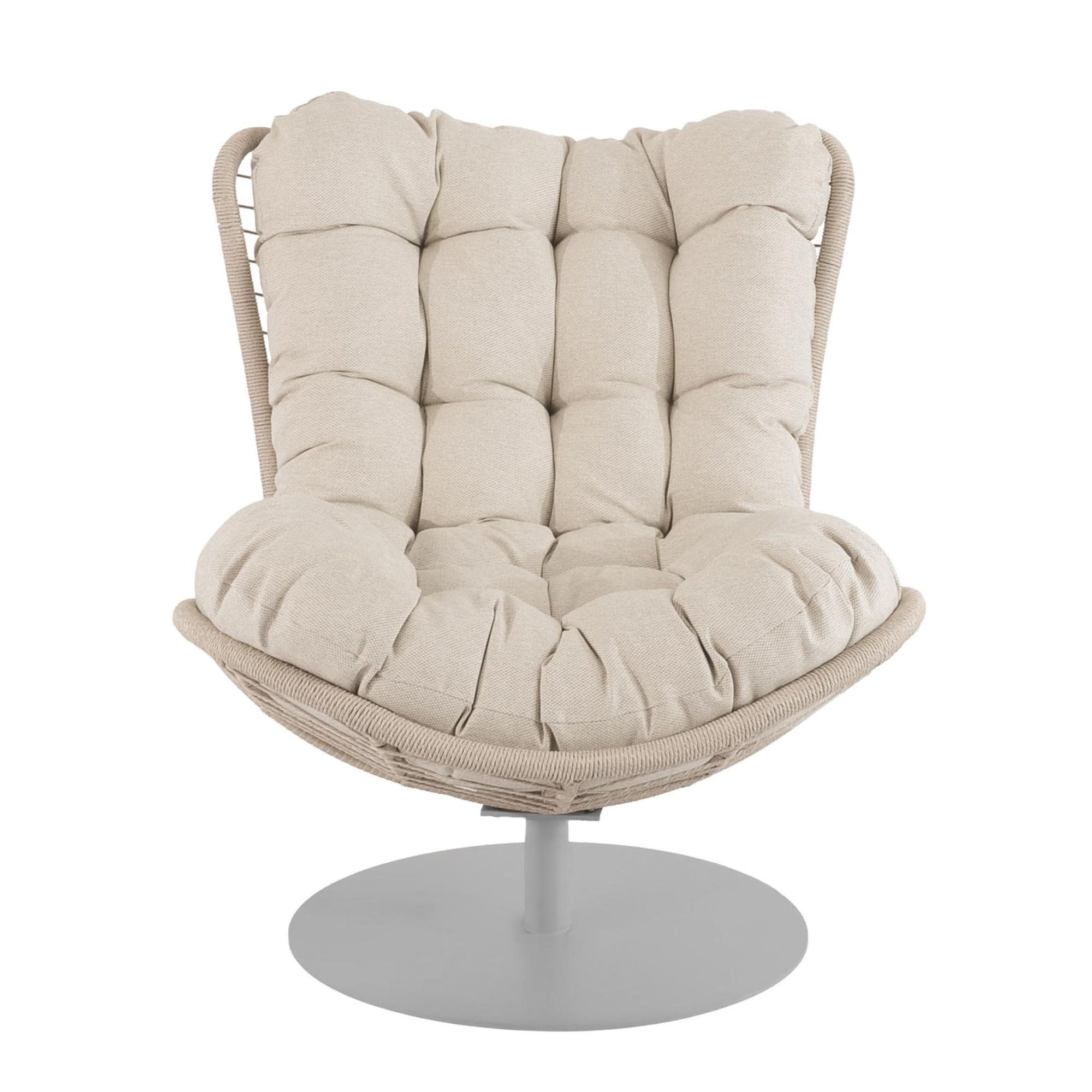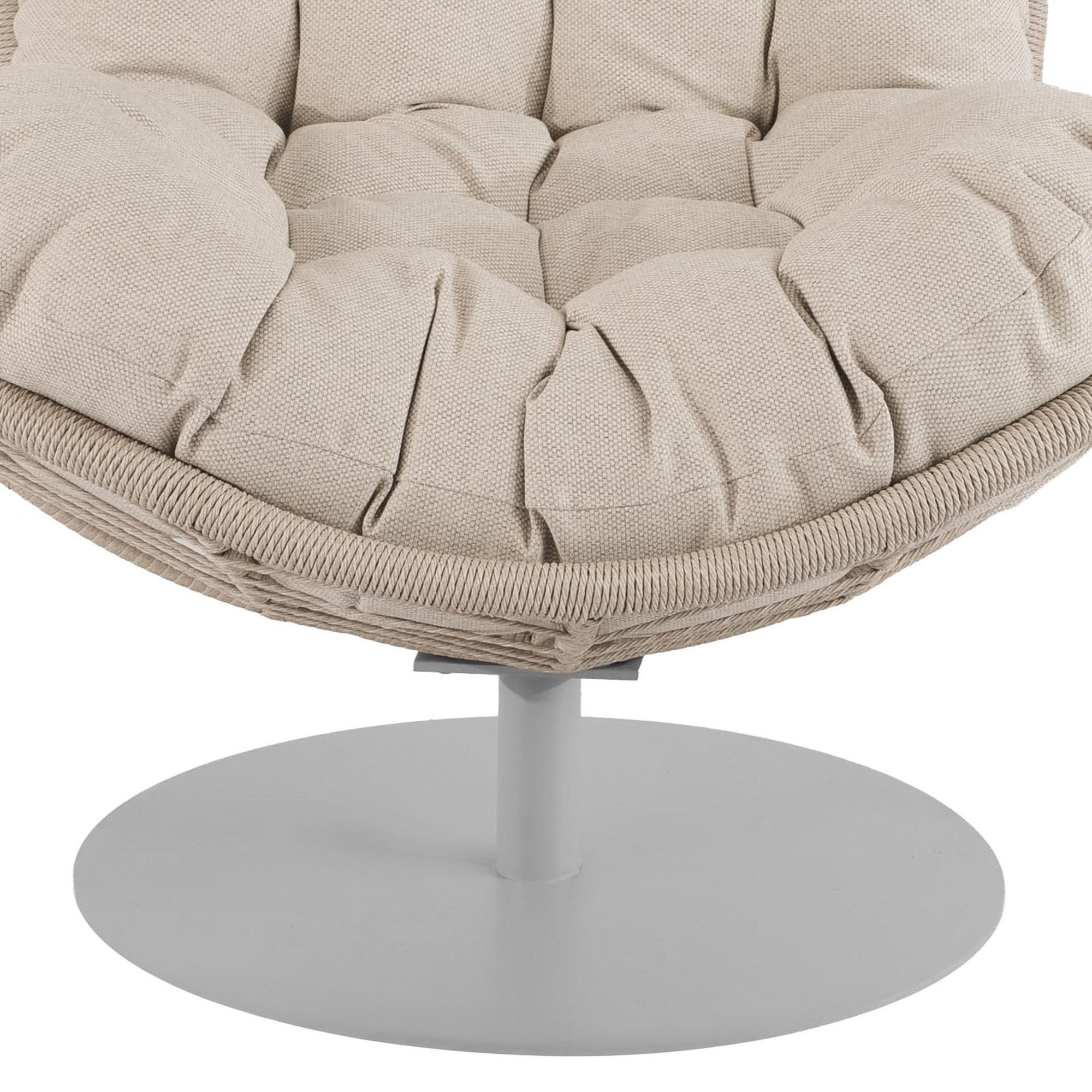 Miękka, beżowa poduszka o grubości 20 cm otula komfortem i pozostaje na miejscu dzięki praktycznym wiązaniom. Tkanina jest przyjemna w dotyku i łatwo utrzymasz ją w czystości. Dzięki impregnacji długo zachowuje świeży wygląd. Ręcznie pleciony beżowy kosz z technorattanowych włókien jest odporny na promienie słoneczne, deszcz i zmiany temperatury. Zachowuje kształt i kolor przez lata. Fotel obrotowy ogrodowy Salo naturalnie dopasowuje się do Twoich ruchów – możesz się spokojnie relaksować